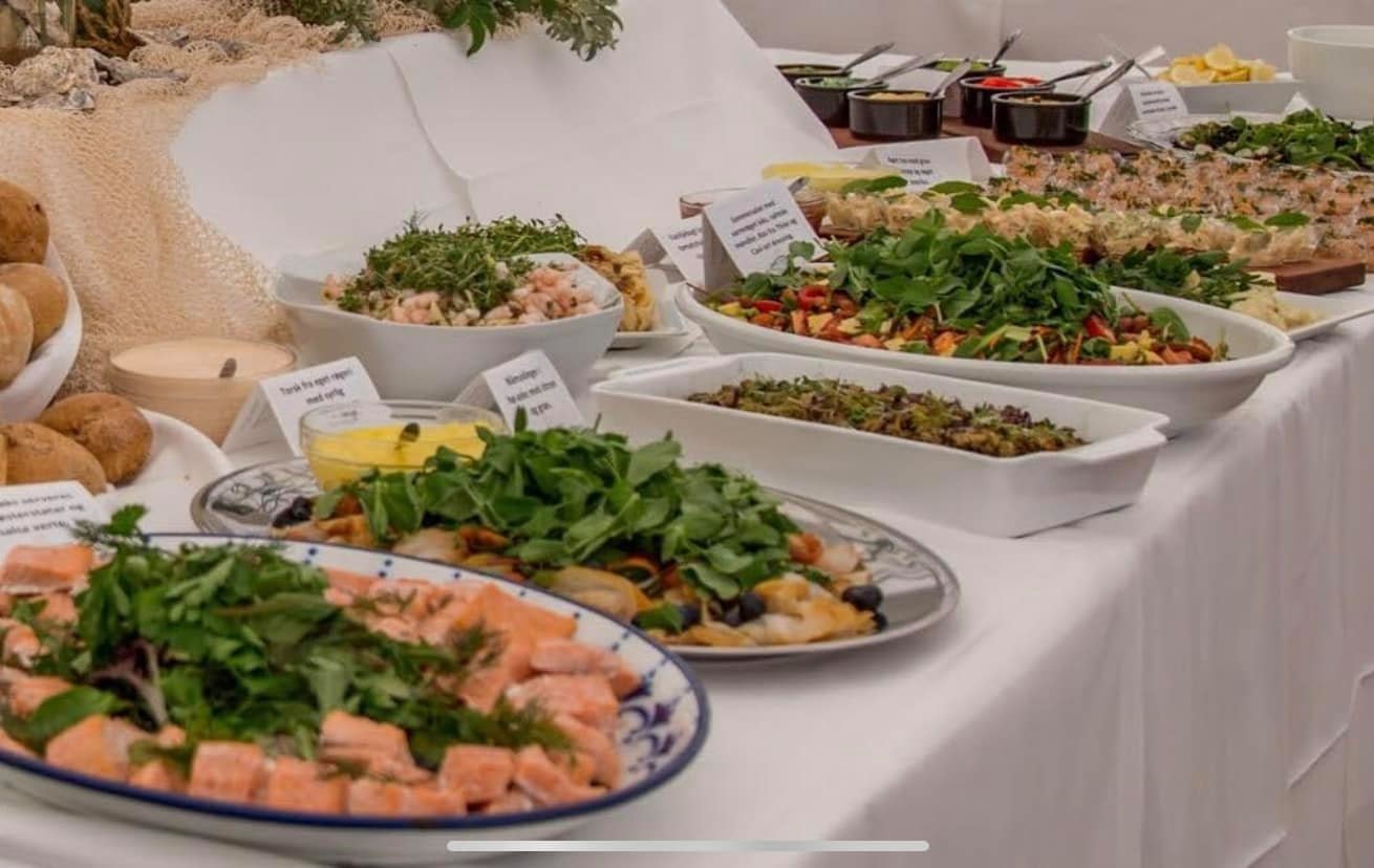 Der serveres en lækker fiske- og skaldyrsbuffet. Der vil være live musik og dans.