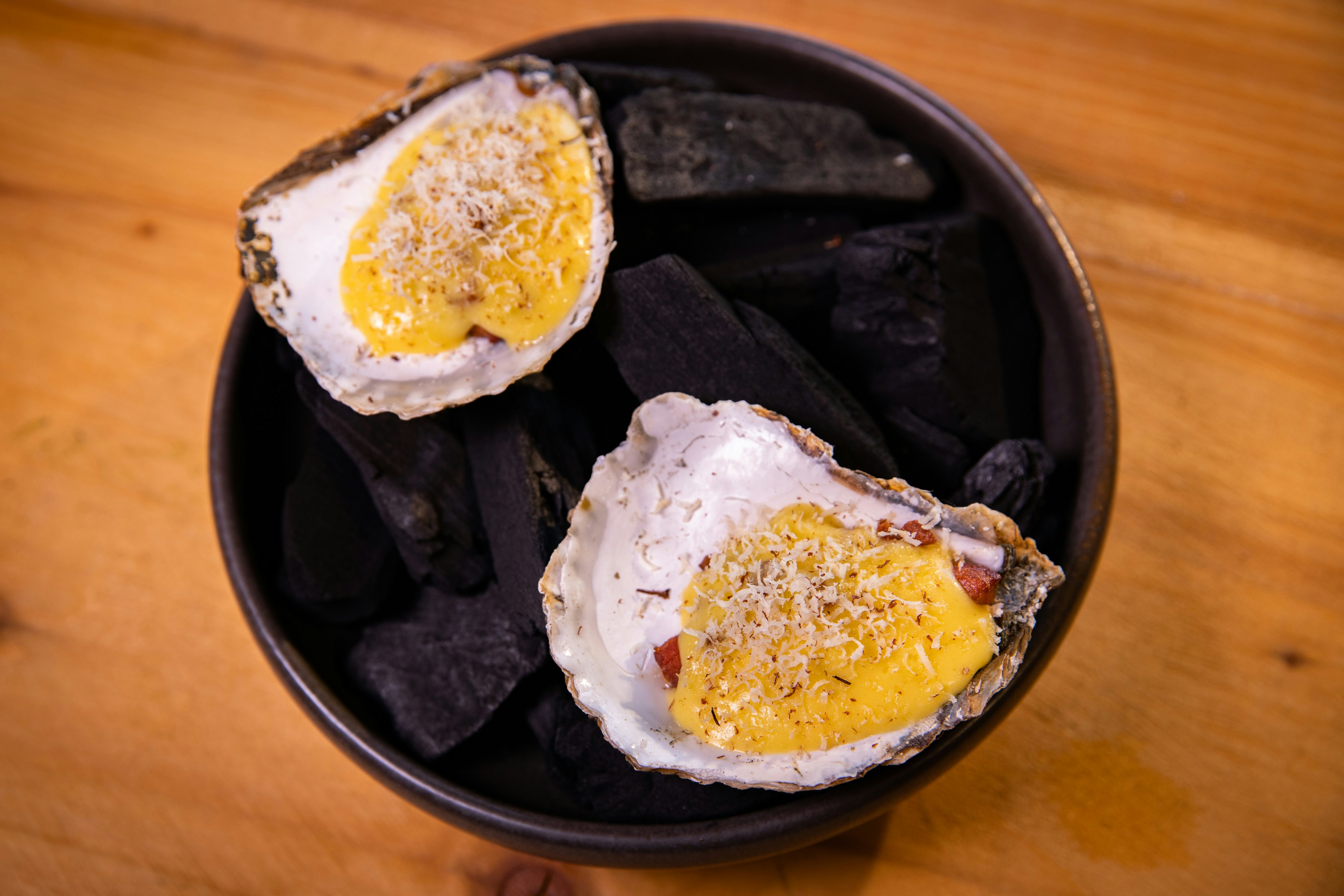 Kom de friske østers direkte på gløderne og vent til de åbner sig. Alt efter friskhed og tykkelse kan det tage flere minutter.
